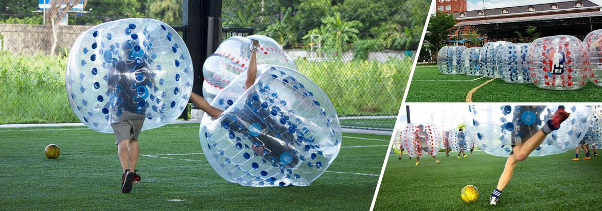 A relatively new sport with roots in northern Europe, Bubble Football incorporates the fun of zorbing and football with teams bumping, bashing bobbling and rolling themselves to victory. Teams consist of five players aged 16 to 38 and players wear a bubble suit on their upper torso and head while trying to score goals and take down opponents in the process. The game lasts 20 minutes, two 10-minute halves, and the team with the most goals win.