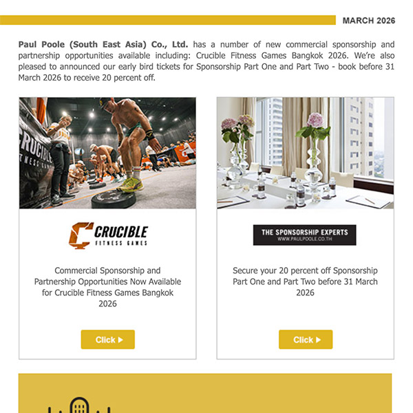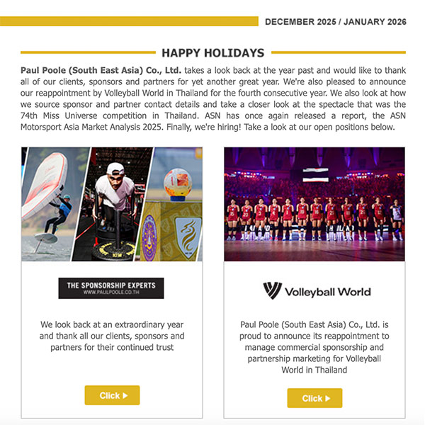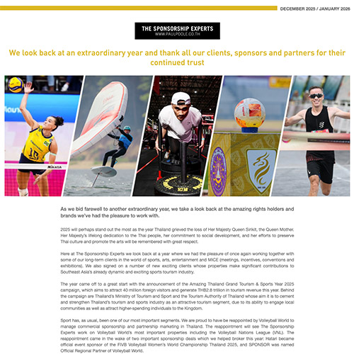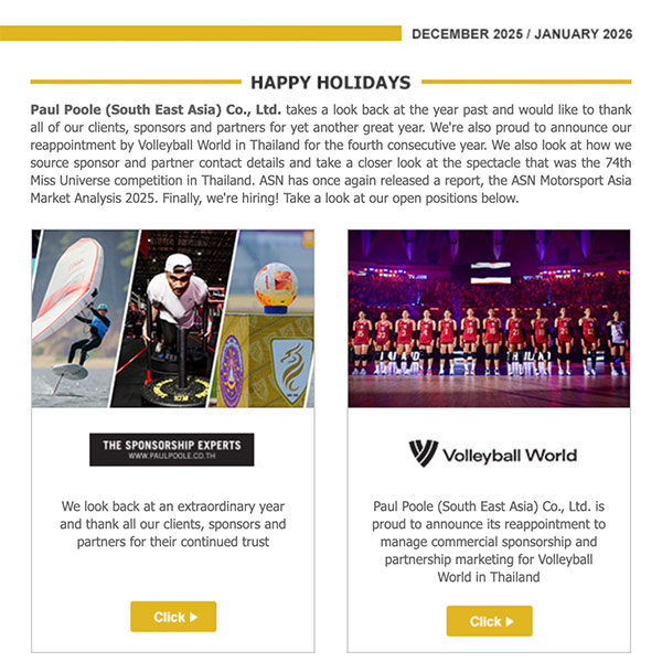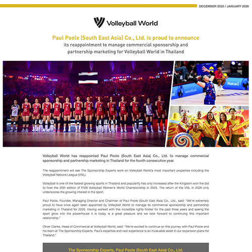 Paul Poole (South East Asia) Co., Ltd. is proud to announce its reappointment to manage commercial sponsorship and partnership marketing for Volleyball World in Thailand